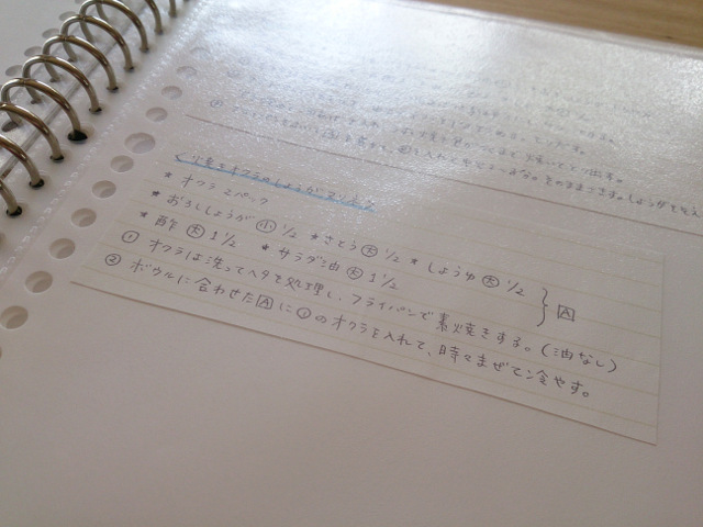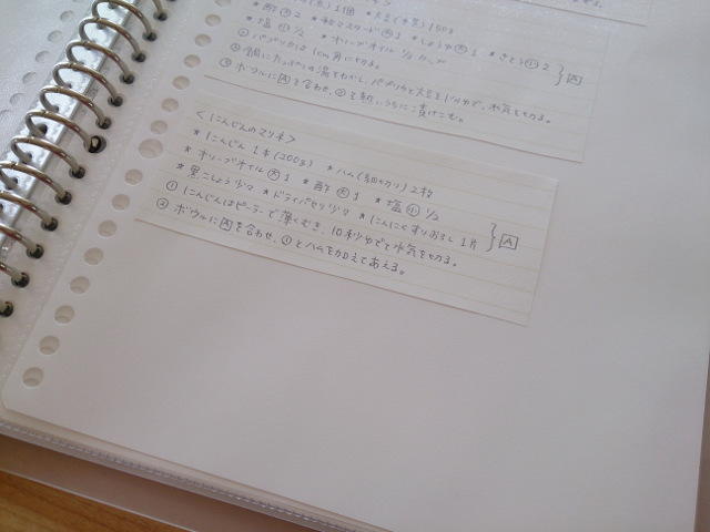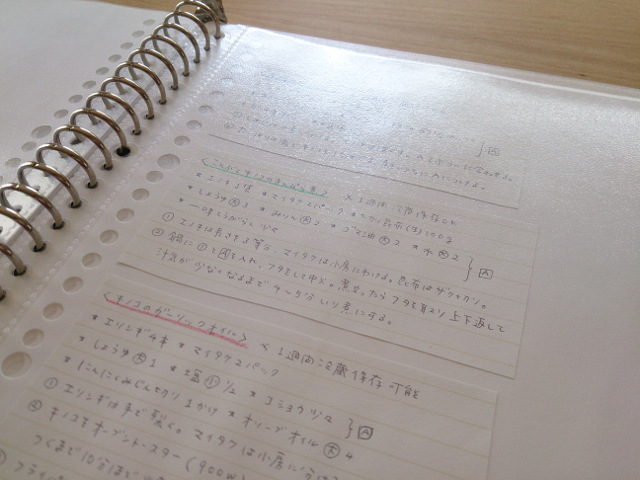 貼りつけた紙が枠のように見えるので、レシピとレシピの境界もハッキリわかります。