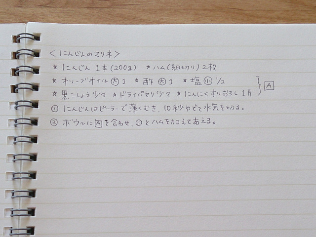 まず、ノートにレシピを手書きします。